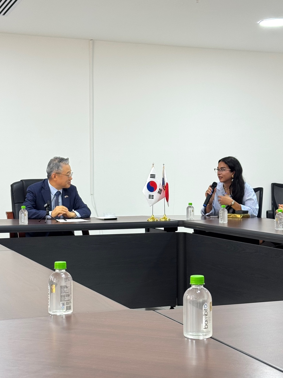 8.12.(화) 파나마대학 국제관계학 전공 대학생연합 소속 대학생 20여명은 대사관을 방문, 한병진 대사의 양국관계에 대한 설명을 청취하고 직원들과 대화하는 시간을 가졌습니다.